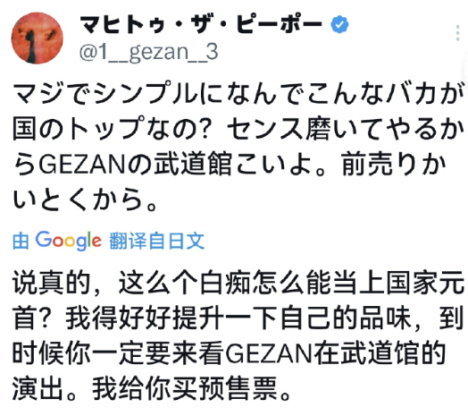 日本摇滚乐队GEZAN的主唱松村豪太,因公开批评高市早苗,引发大规模网络争议,最终不得不删除原帖并发布道歉声明。他曾指高市早苗为“バカ”(白痴),并批评其言论可能对中日关系造成破坏。他特别提到:“中国有太多我爱的人。大家愿意来到这个扭曲的日本,如果对高市那种可能切断这种联系的危险思维不保持警惕,那才奇怪吧?”这条文章迅速引发关注,截至当日傍晚,转发量超过8,000次,点赞数突破2万。然而,随着话题发酵,大量日本网民开始涌入其账号进行攻击。他相关推文下的负面评论占比高达76%,其中不乏人身攻击、国籍侮辱甚至死亡威胁。有用户留言称“滚回中国去”、“别用日语说话”、“你根本不配代表日本音乐人”。面对汹涌的网暴浪潮,他在12月24日关闭了所有社交账号的评论功能。值得注意的是,MahiToThePeople并非首次表达对中国的好感。早在2019年,GEZAN乐队就曾在中国多个城市举办巡演,包括北京、上海、成都等地,累计演出场次达7场。据LiveHouse主办方提供的数据,其中国巡演总观众人数超过6,000人,社交媒体上与中国乐迷互动频繁。他在2021年的一次采访中也曾表示:“中国的年轻人对音乐的理解力和热情,让我重新思考了创作的意义。”